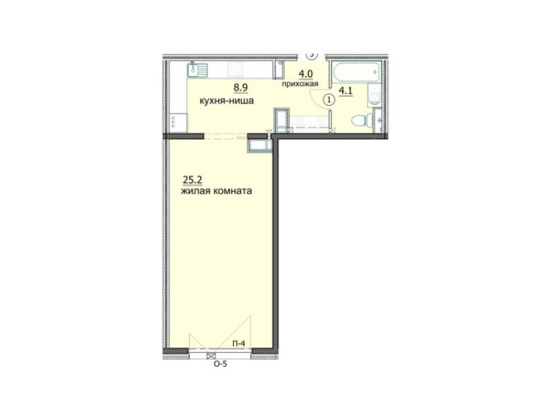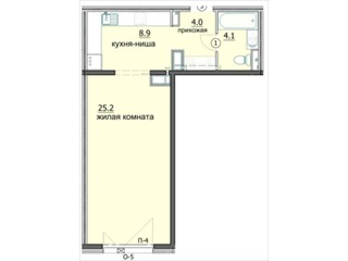 общая 42,2 м2, жилая 25,2 м2, кухни 8,9 м2 |