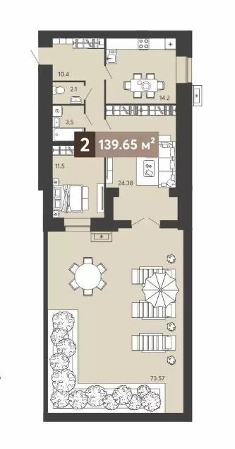 Площадь террасы - 73.57 кв.м Жилой комплекс Баланс - это комфортный кирпичный дом класса "комфорт" с бесшумными лифтами и дизайнерскими холлами. На первом этаже расположена комната гигиены, а на втором - квартиры с террасами, где можно насладиться свежим воздухом и пейзажами города. Для маленьких жителей комплекса предусмотрены современные детские площадки, а для четвероногих друзей - лапомойка для собак.
