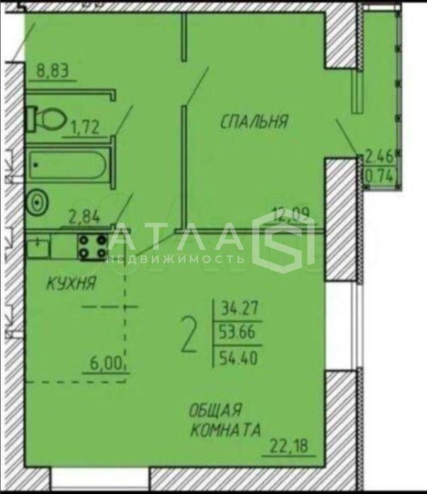 Двухкомнатная квартира 54,00 м2 по ул. Генерала Глазунова 17 за 4550000 руб. |