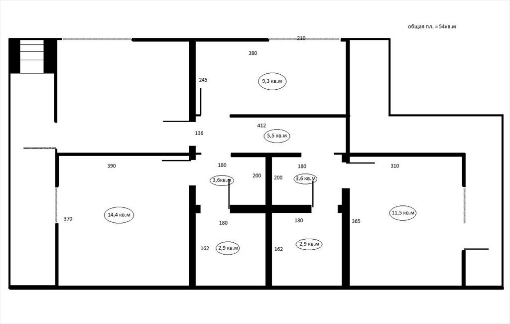 - Общая площадь (без учета холодных помещений) - 54,9 кв.м.