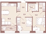 общая 68 м2, жилая 24,9 м2, кухни 19,2 м2 |