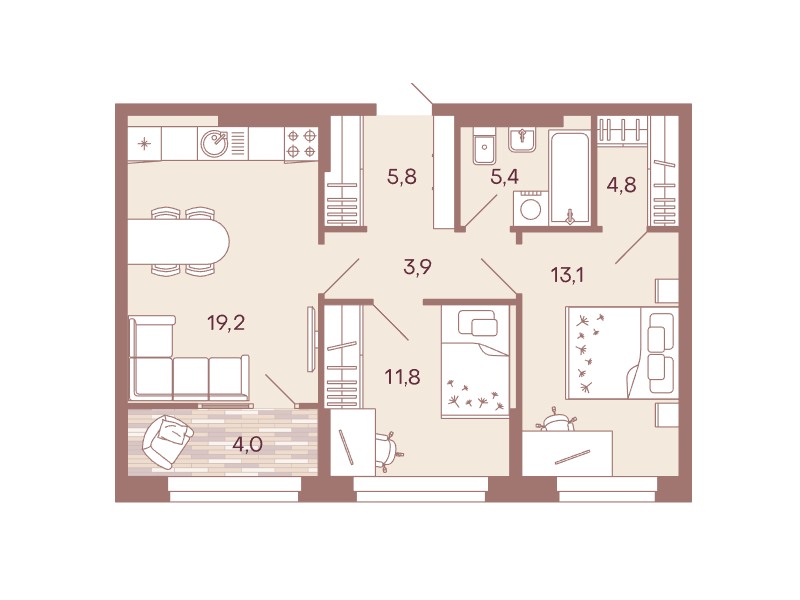 Площадь комнат – 11,8 кв.м, 13,1 кв. м,
