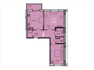 общая 67,86 м2, жилая 31 м2, кухни 14,72 м2 |